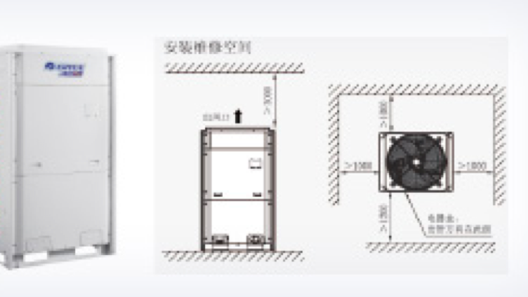 3.室外機(jī)是散熱設(shè)備,務(wù)必確保安裝位置通風(fēng)流暢。以免影響使用效果。要求出風(fēng)無(wú)障礙,如周圍空間為開放空間,機(jī)組頂部距頂墻1500mm以上;如非開放空間,或距頂墻不足1500mm,需接回風(fēng)管。