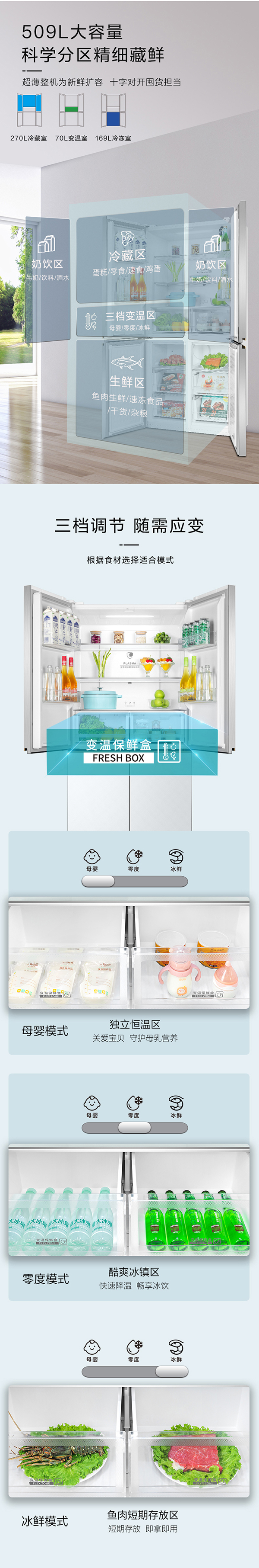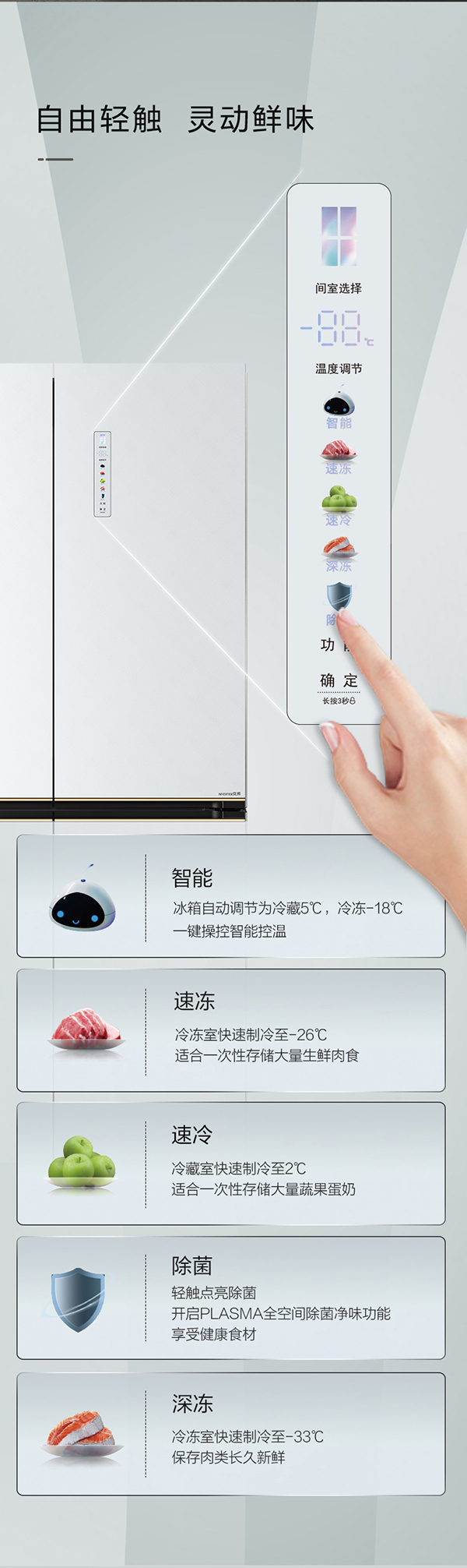 -33攝氏度深凍儲(chǔ)鮮;PLASMA全空間除菌凈味;平齊不凸出;雙通道循環(huán)散熱